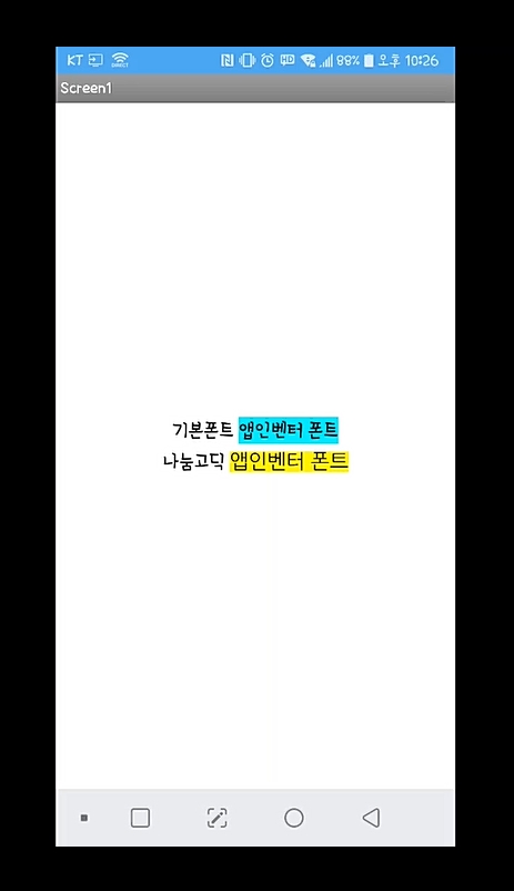사용자가 원하는 폰트의 적용 예를 보여주기 위해 다음과 같이 앱인벤터 화면을 구성해 보았습니다.